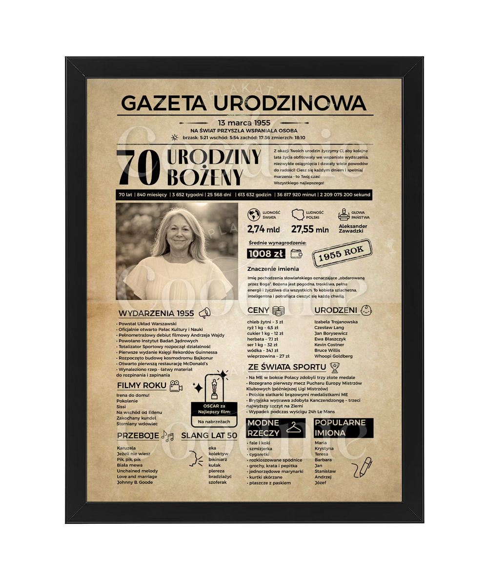 plakat na urodziny personalizowany duży gazeta urodzinowa