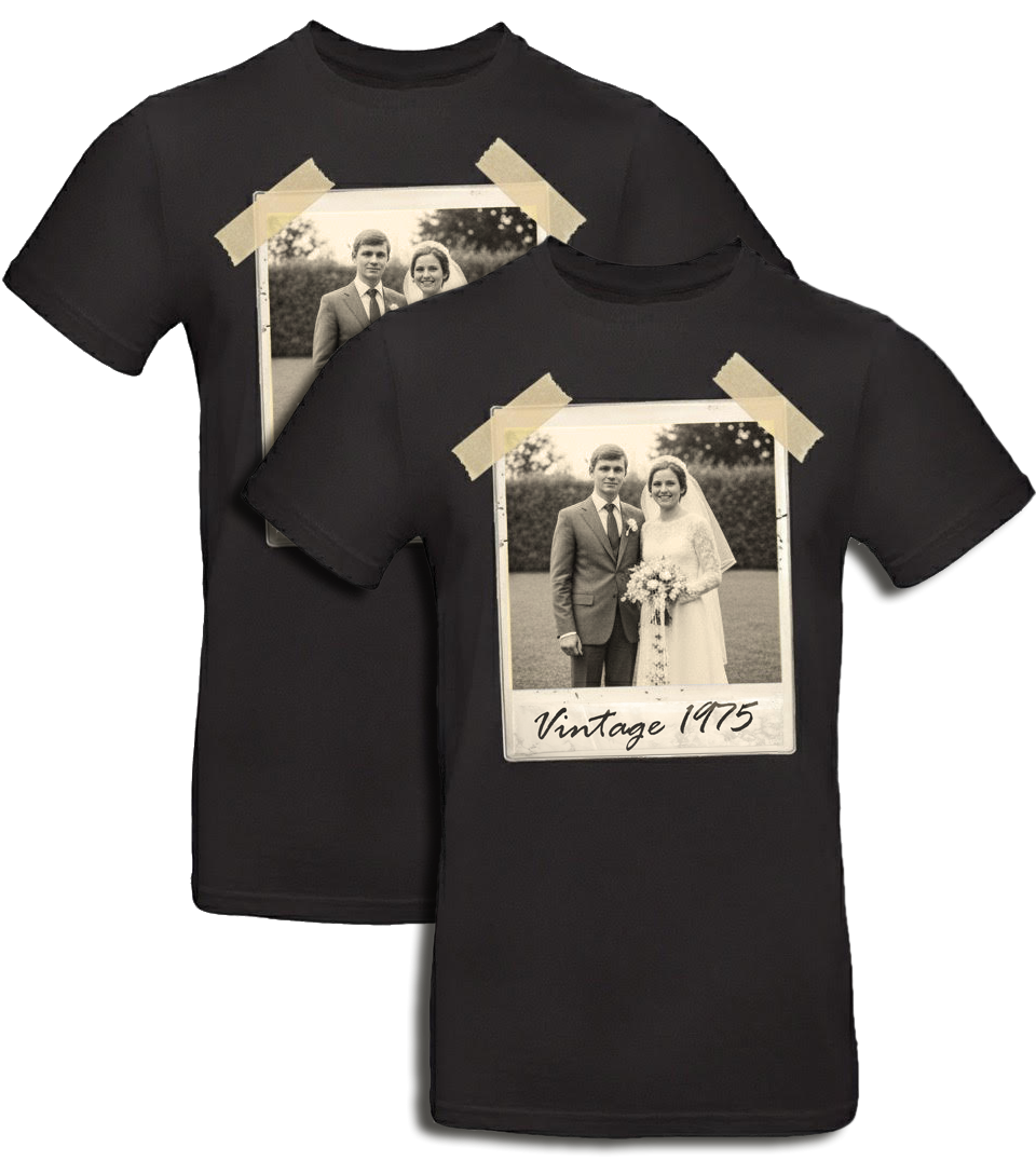 Czy pamiętacie ten dzień, kiedy ta wspólna historia się zaczęła? Teraz możecie ożywić magiczne wspomnienia na... koszulce! Nasze unikalne nadruki w stylu retro zdjęcia to idealny, spersonalizowany produkt dla Jubilatów – każdy egzemplarz jest absolutnie unikatowy.